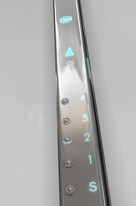 - при отключении электричества: спускается на первый этаж; в кабине работает свет и вентилятор от аккумулятора